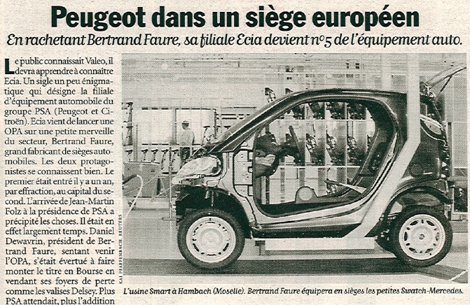 1998년 이 그룹은 그룹의 이전 사업부에서 1987 년에 설립 된 PSA의 자회사인 ECIA(자동차 산업을 위한 장비 및 부품)와 자동차 시트 생산 업체인 Bertrand Faure의 합병으로 만들어졌습니다.