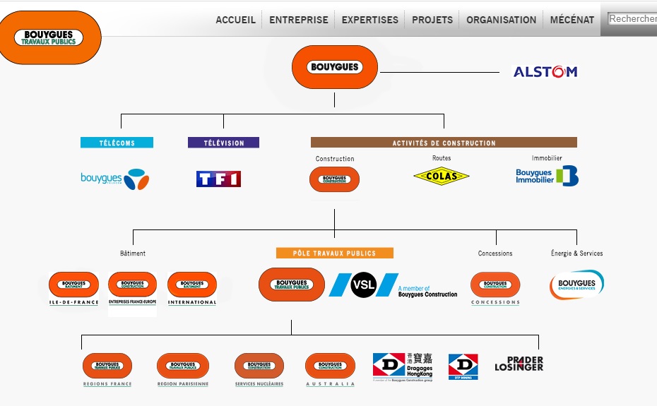 부이그 (Bouygues) 기업은 건설, 부동산, 콜라, 통신 이동업체, 방송 등 그룹에 형태로 구성됩니다.