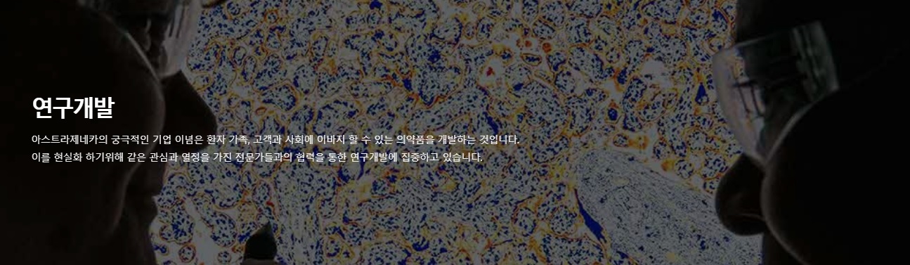아스트라제네카는 글로벌 과학 기반의 바이오제약회사로서 전 세계의 수백만명의 환자들에게 혁신적인 의약품 제공을 하기 위해 노력하고 있습니다. 과학적 혁신을 통한 성장(Growth through Innovation)이라는 기조에 집중하고 있습니다. 우리는 혁신적인 파이프라인을 기반으로 지속가능한 성장을 추구하고 있습니다. 이러한 우리의 노력을 통해 전세계 환자들에게 의미 있는 변화와 가치를 전하고 있습니다.