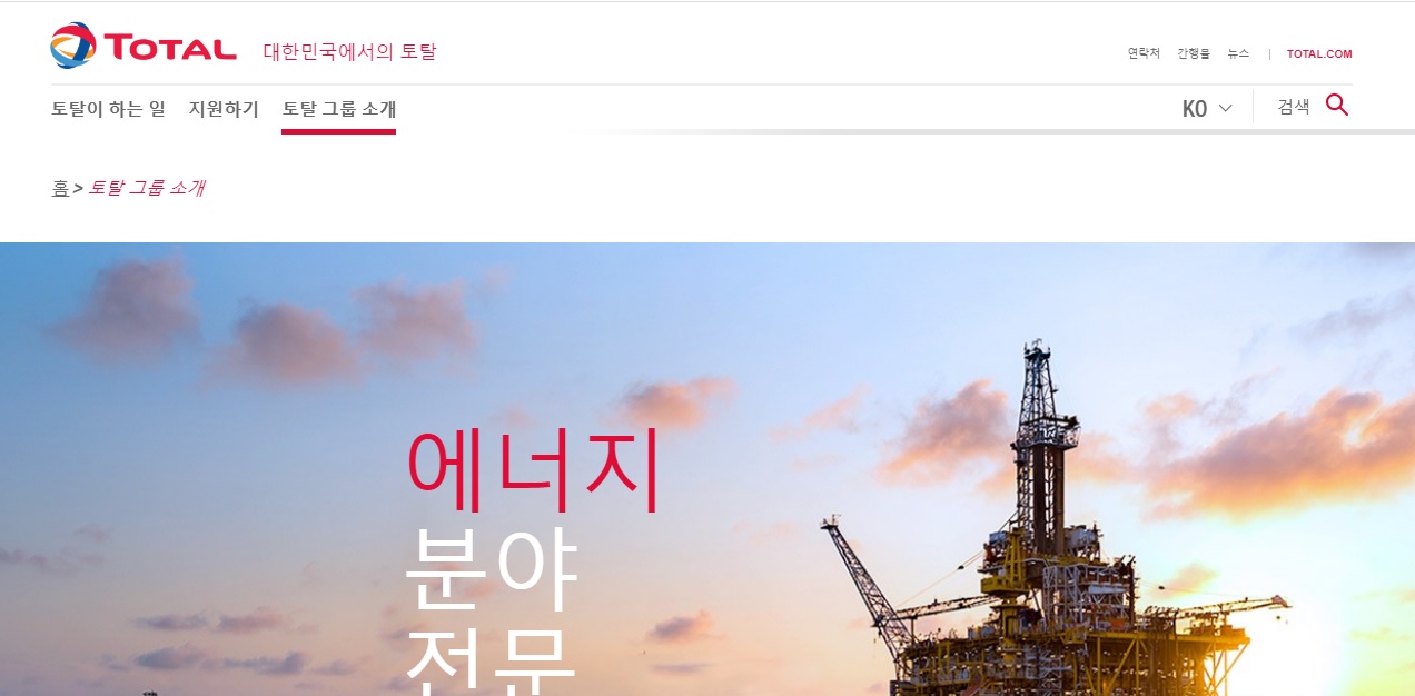 토탈은 1985년 한국에서 사업을 시작한 이후 현재 1,900여 명의 직원과 함께 3개의 자회사와 2개의 대규모 합작 기업 그리고 2개의 대형 석유 및 가스 프로젝트를 운영하고 있는 한국의 주요 에너지 및 화학 사업자입니다.