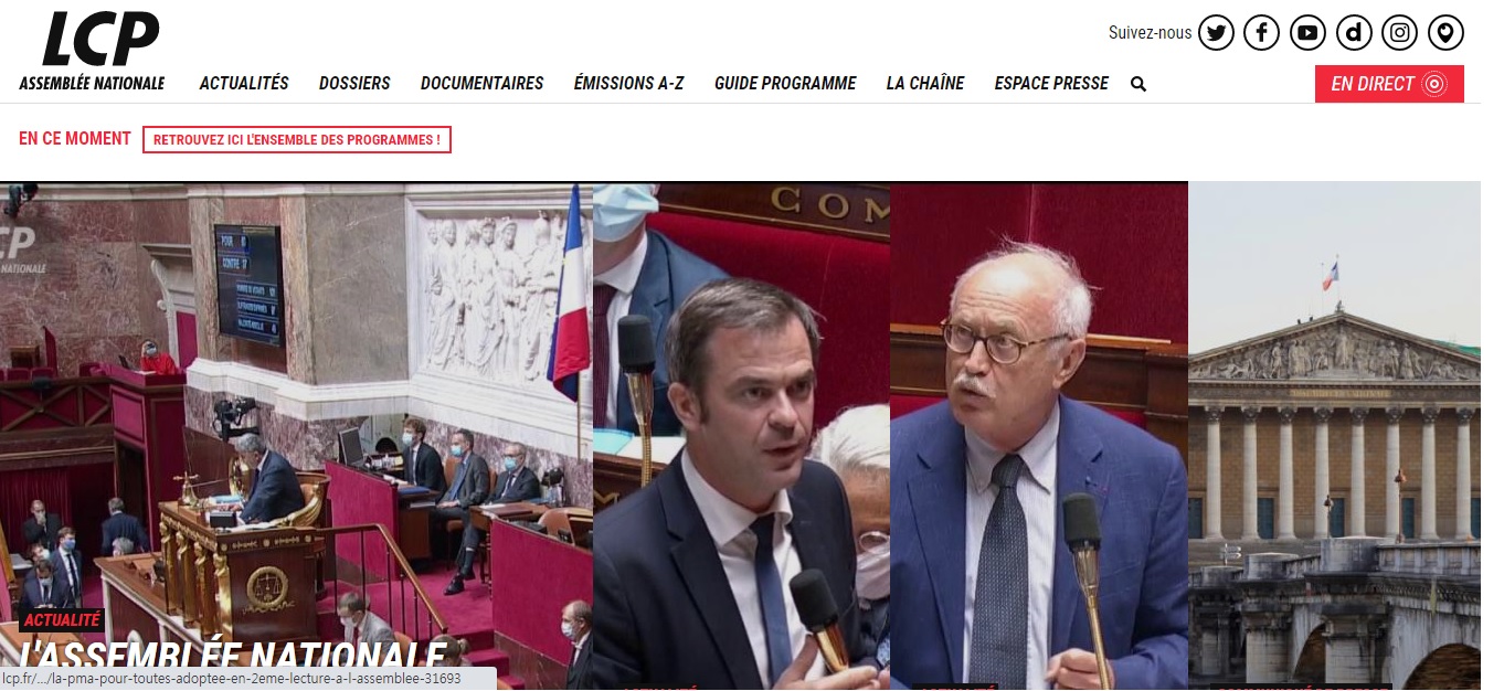 La Chaine Parlementaire는 1999 년 12 월 30 일 법률에 의해 자매 방송국 인 Public Senat과 함께 프랑스 텔레비전 네트워크를 만들었습니다. 위원회 청문회, 정부에 대한 질문, 의회 토론과 정부 정책에 관한 토론을 방송합니다.